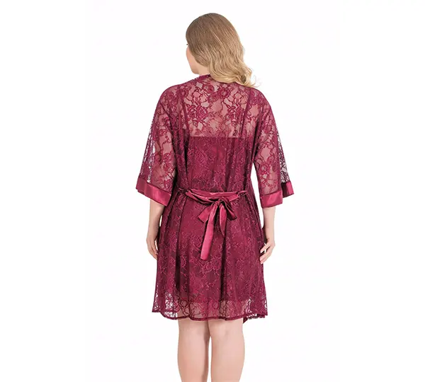 AHU 6153 Büyük Beden Bordo İki Saten Sabahlık Gecelik Takımı