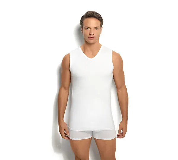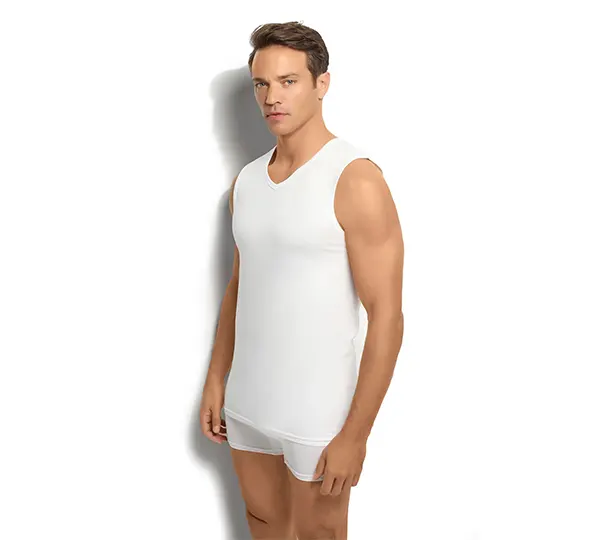 Erkek sıfır kol atlet denilince akla gelen sadelik ve pratiklik, bu üründe V yaka tasarımıyla modern bir dokunuş kazanıyor. Dar kesimli vücut hatlarına uyum sağlayan model, gömlek veya tişört altında görünmez bir konfor sunar. Sıfır kol tasarımı, omuz ve kollarınıza hareket özgürlüğü tanırken, V yaka çizgisi şık bir görünüm elde etmenizi kolaylaştırır. Ayrıca, dikişsiz yaklaşıma yakın özel dikim teknikleri, giyim sırasında iz bırakmaz ve gün boyu rahatlık hissini sürdürür.