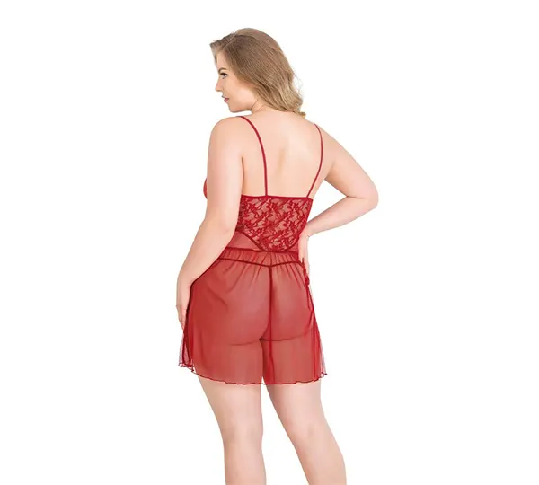 Primoda Büyük Beden Kırmızı Kısa Tül Gecelik 3033