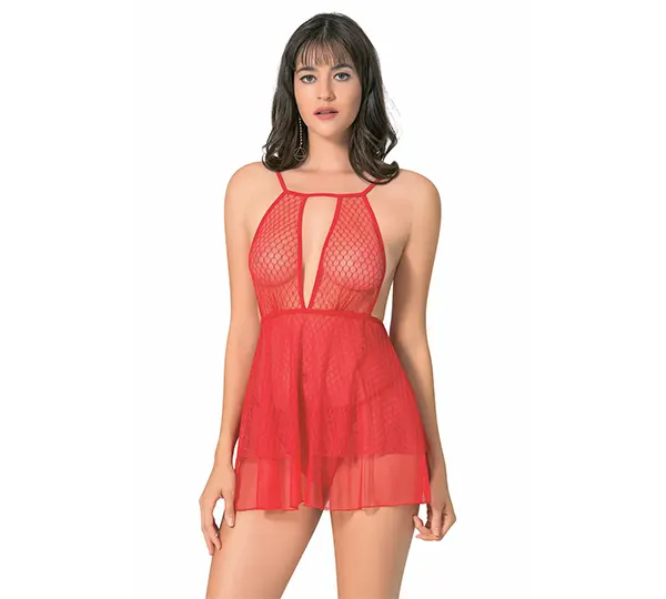 dekolteli kısa tül gecelik
