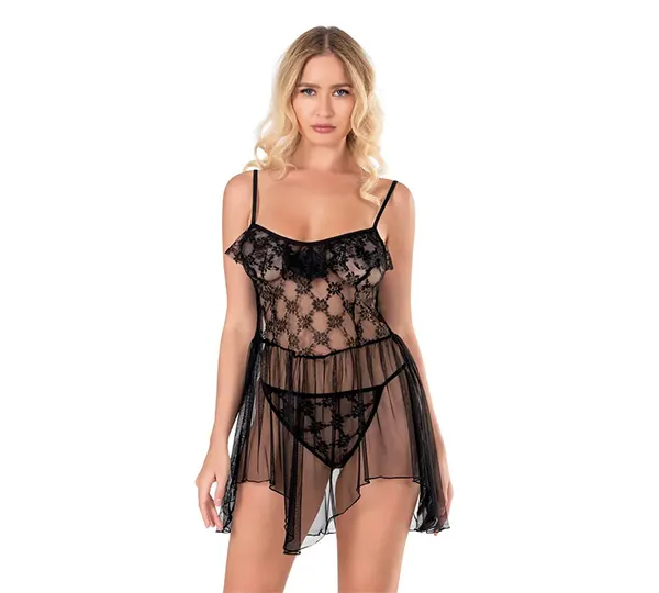 siyah tül gecelik