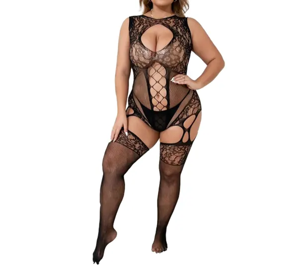 Vivaldy Jartiyerli Büyük Beden Fantezi Vücut Çorabı 3030