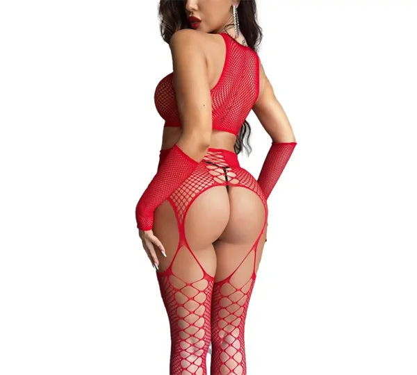 Vivaldy Kırmızı Eldiveli Jartiyerli Fantezi Vücut Çorabı 4126 adet