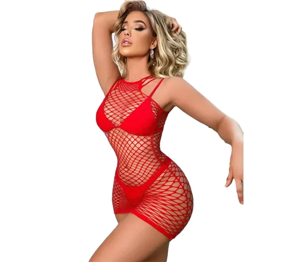 Vivaldy Kırmızı Fileli Elbise Fantezi Vücut Çorabı 4341 adet