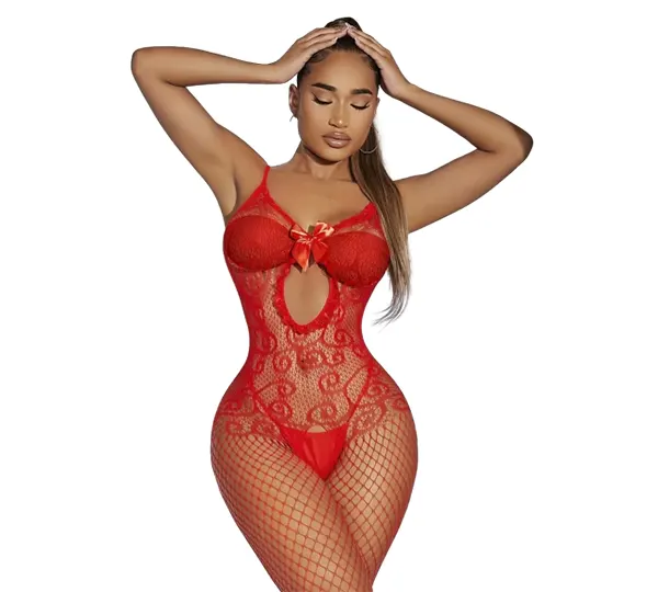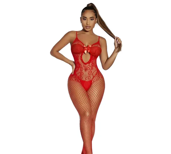Vivaldy Kırmızı Fileli Fantezi Vücut Çorabı 4039